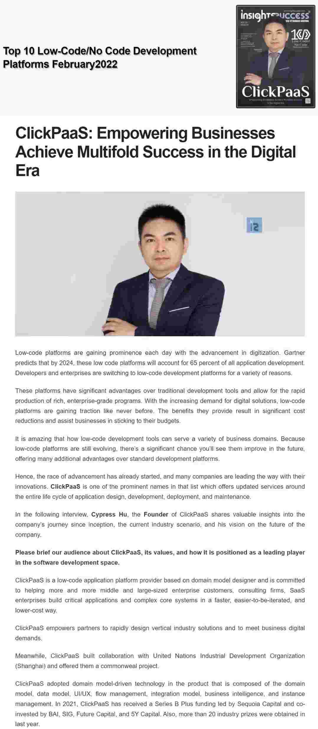 2022年年初,,,,,,,,,,,NO钱包入选外媒Insights Success低代码/无代码开发平台 Top10,,,,,,创始人、、、、、、、、、、CEO胡柏受邀接受专访并荣登封面人物,,,,,,,,他与Insights Success的读者分享了NO钱包成立的初心、、、、、、、、、、、、、发展历程、、、、、、、、、、、、、当前的行业发展趋势以及他对公司未来的展望。。。。。。。。。。。。。